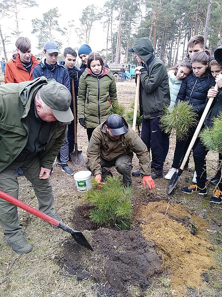 Лісівники разом з дітьми висадили тут в день лісу молоді деревця сосни Веймутової,сосни кримської та корейської.