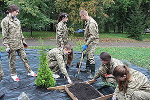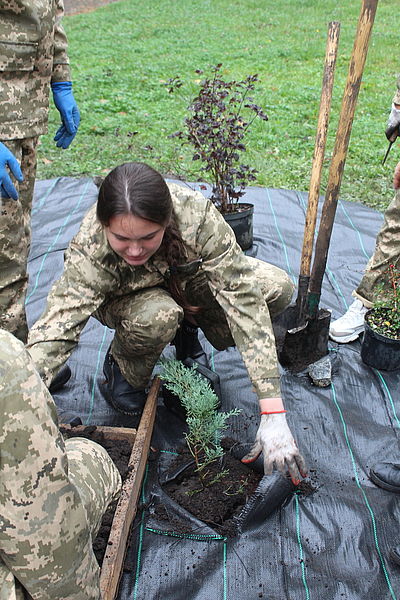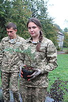 Тож як тільки трапилася нагода – юні лісівники взялися до своєї звичної справи – садити дерева. Щоправда, поки що на клумбі біля рідної школи.