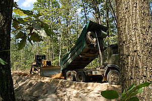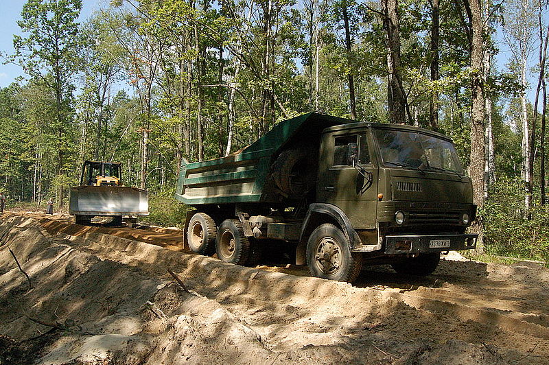 Бульдозер, екскаватор, автогрейдер та 4 самоскиди обслуговують семеро працівників. Відтак бригада встигає привести до ладу лісову дорожню мережу власного лісгоспу та ще й допомогти сусідам.